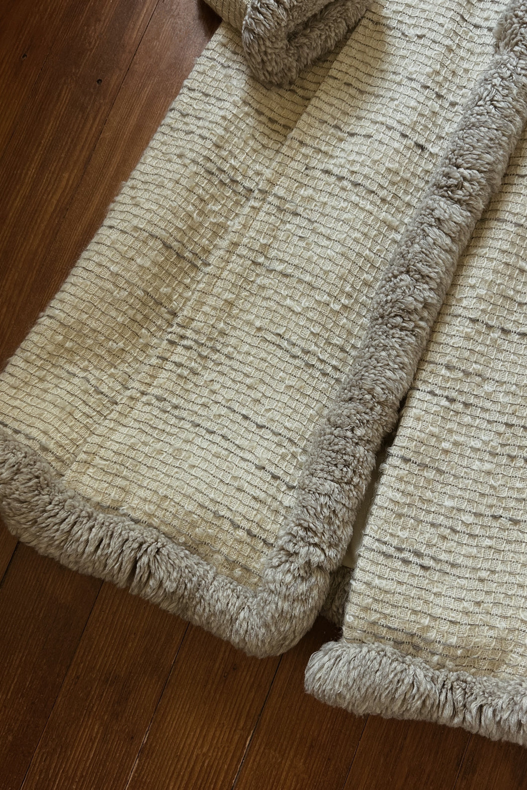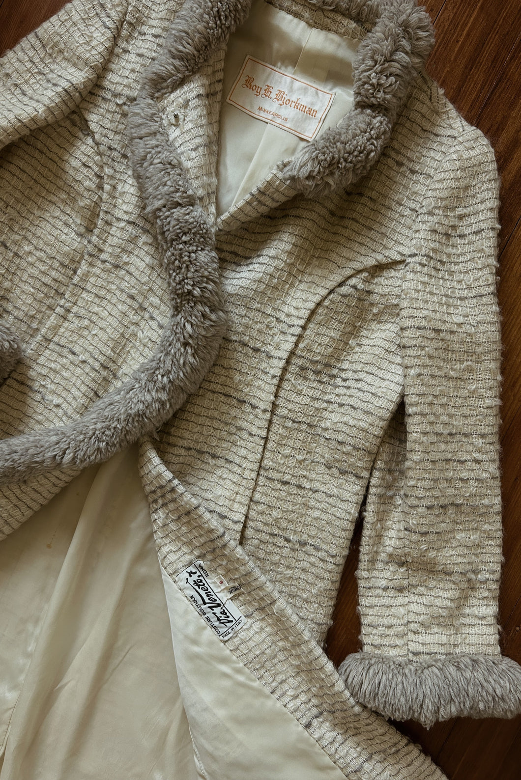1950's Italian Grid Woven Wool Coat | Thick Shag Trim