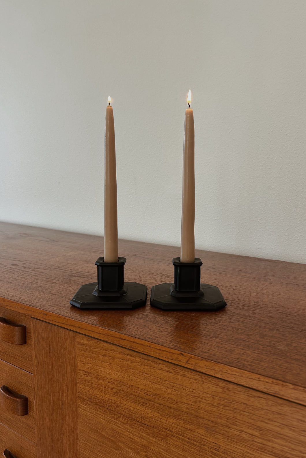 1980's BLACK REGENCY CERAMIC CANDLE HOLDERS | SET OF TWO