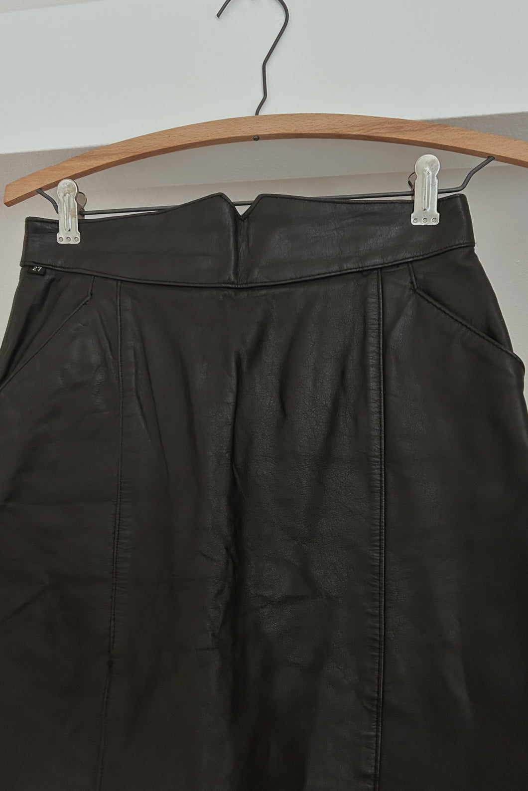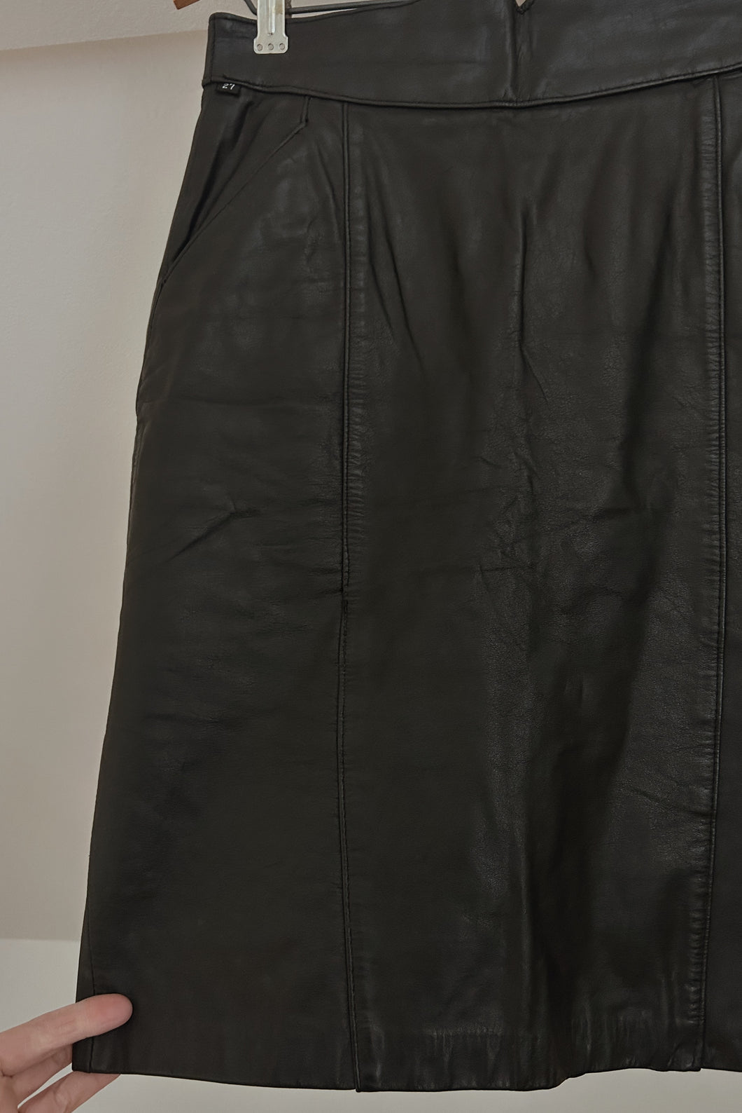 1980's BLACK LEATHER MINI SKIRT | SIZE XS/S