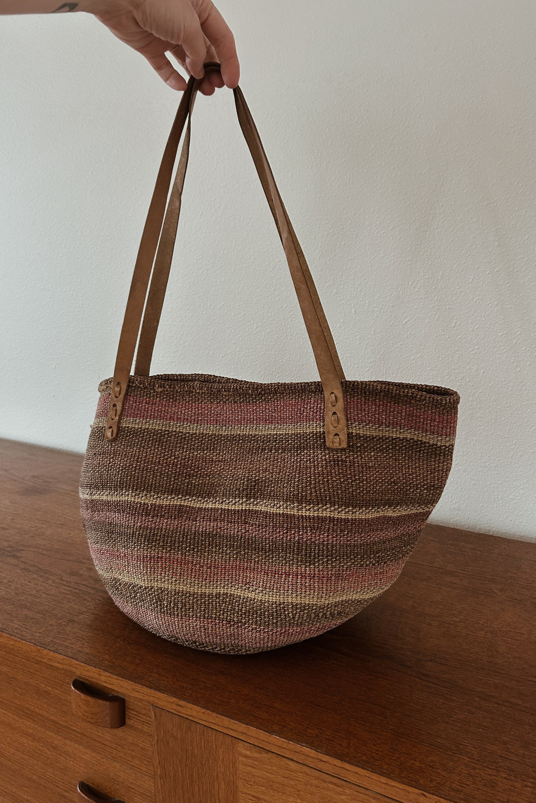 1980's Sisal + Leather Bag