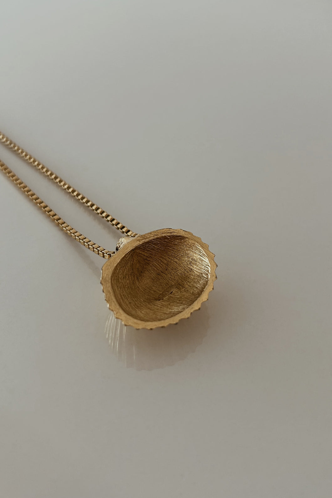 1980's Trifari Gold Plated Scallop Shell Pendant on Gold Plate Chain