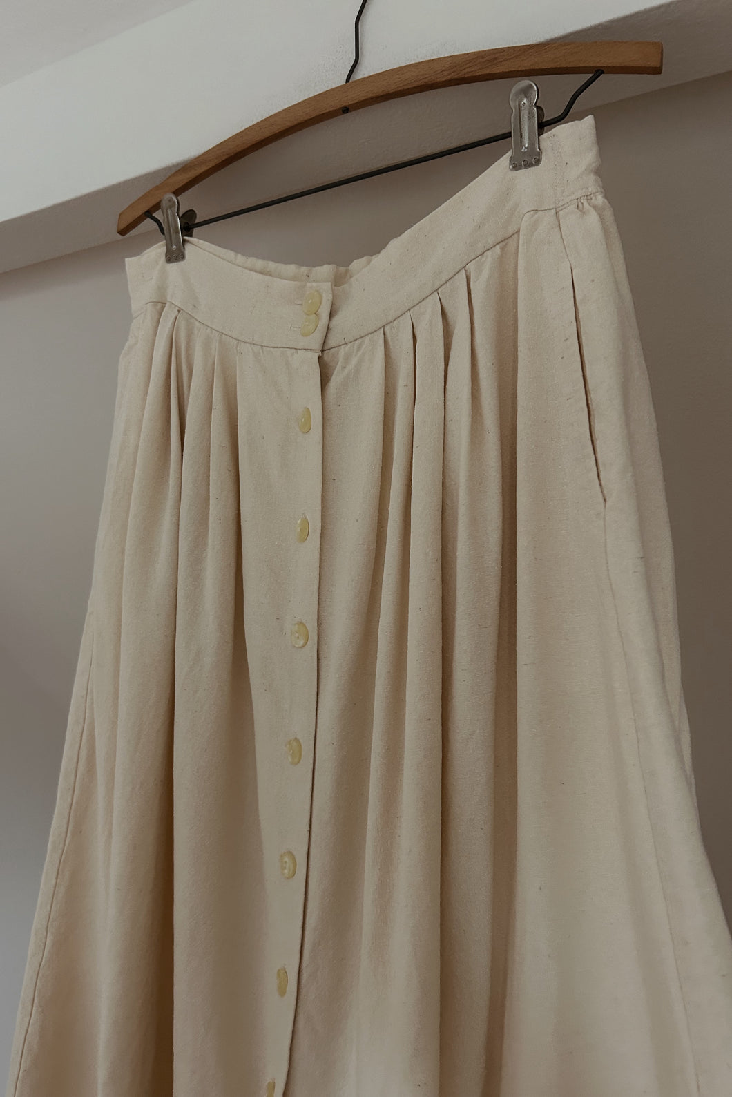 1990's Pure Raw Silk Pleated Button Midi Skirt