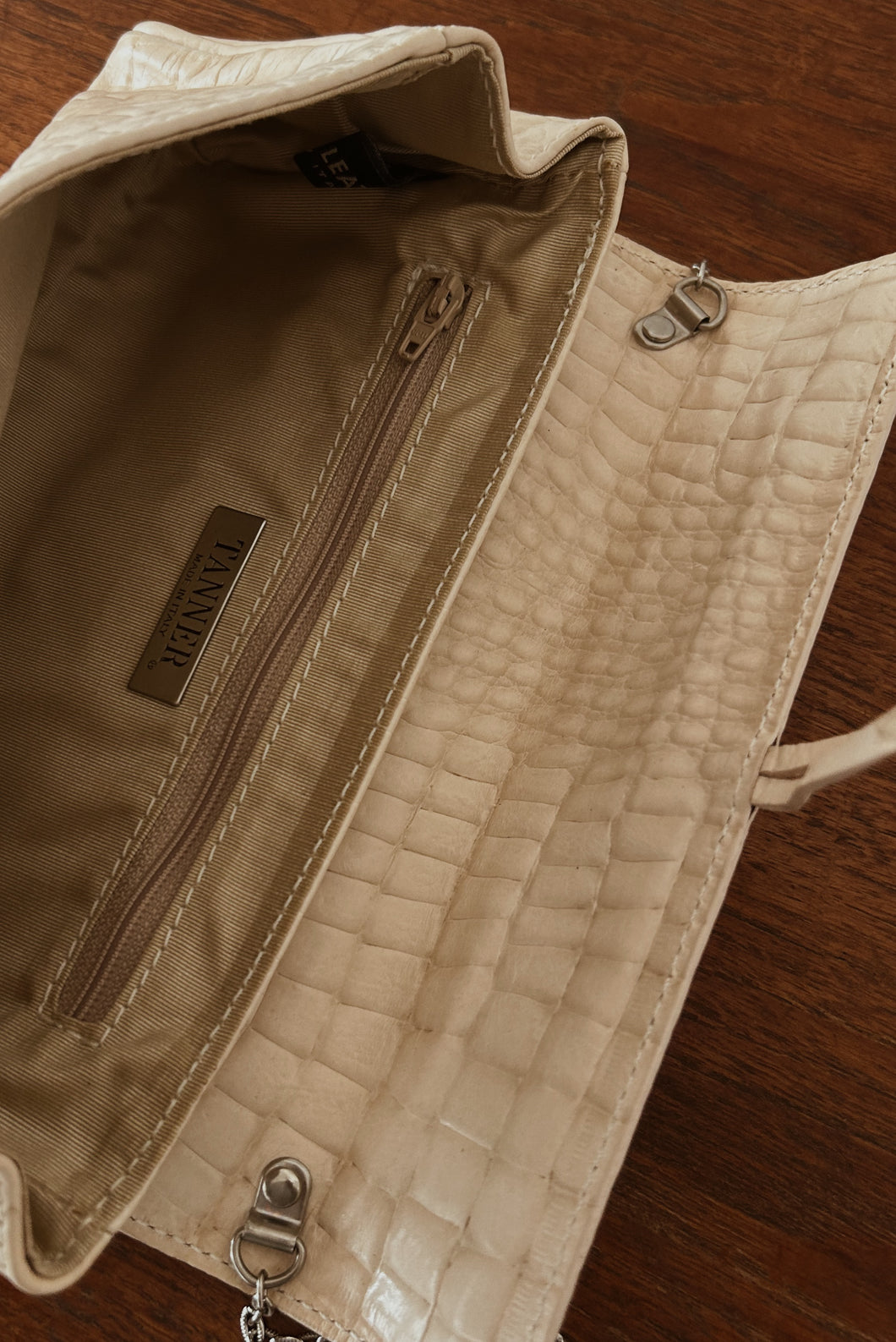1990's TANNER ITALIAN EMBOSSED LEATHER BAG | CHAIN STRAP