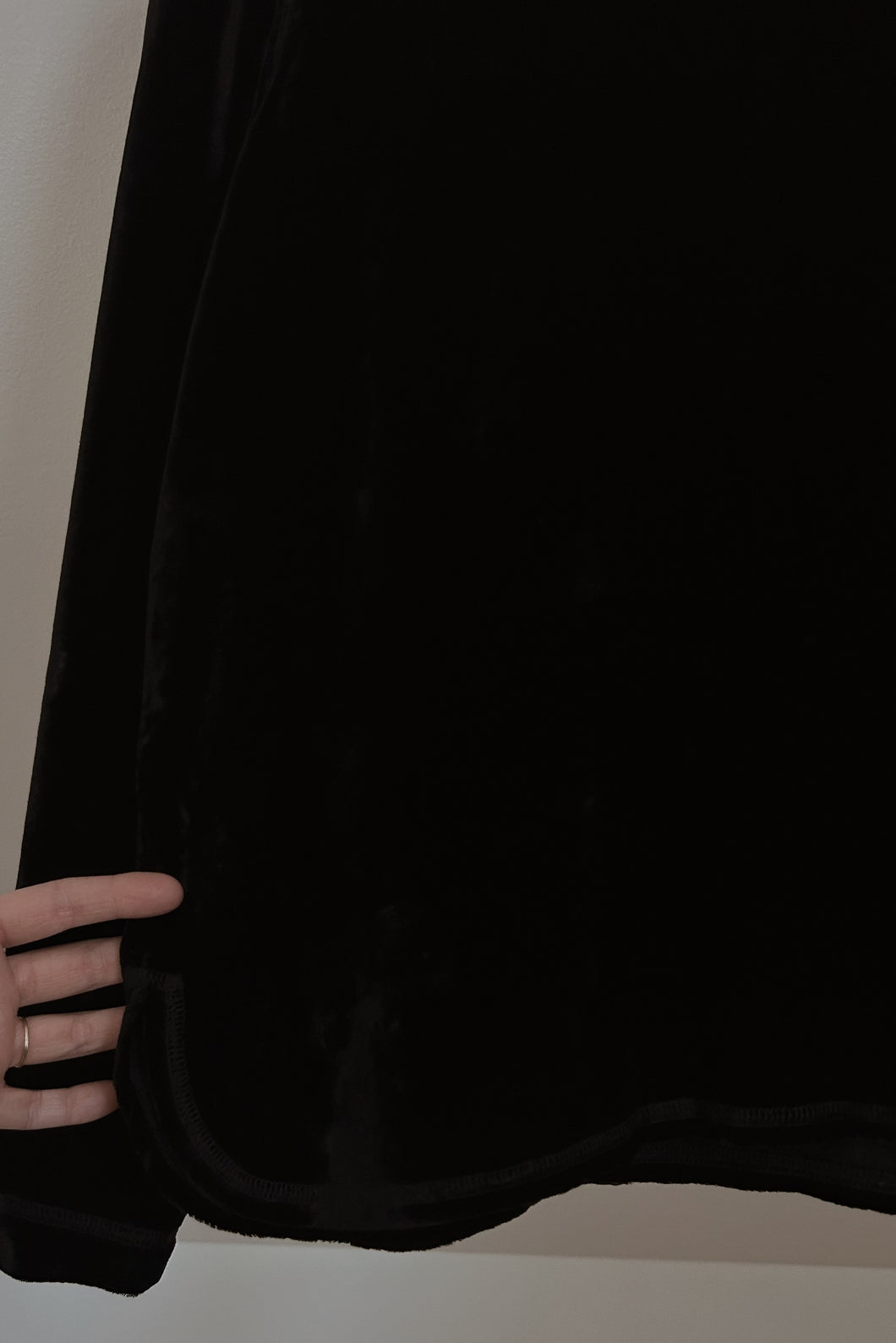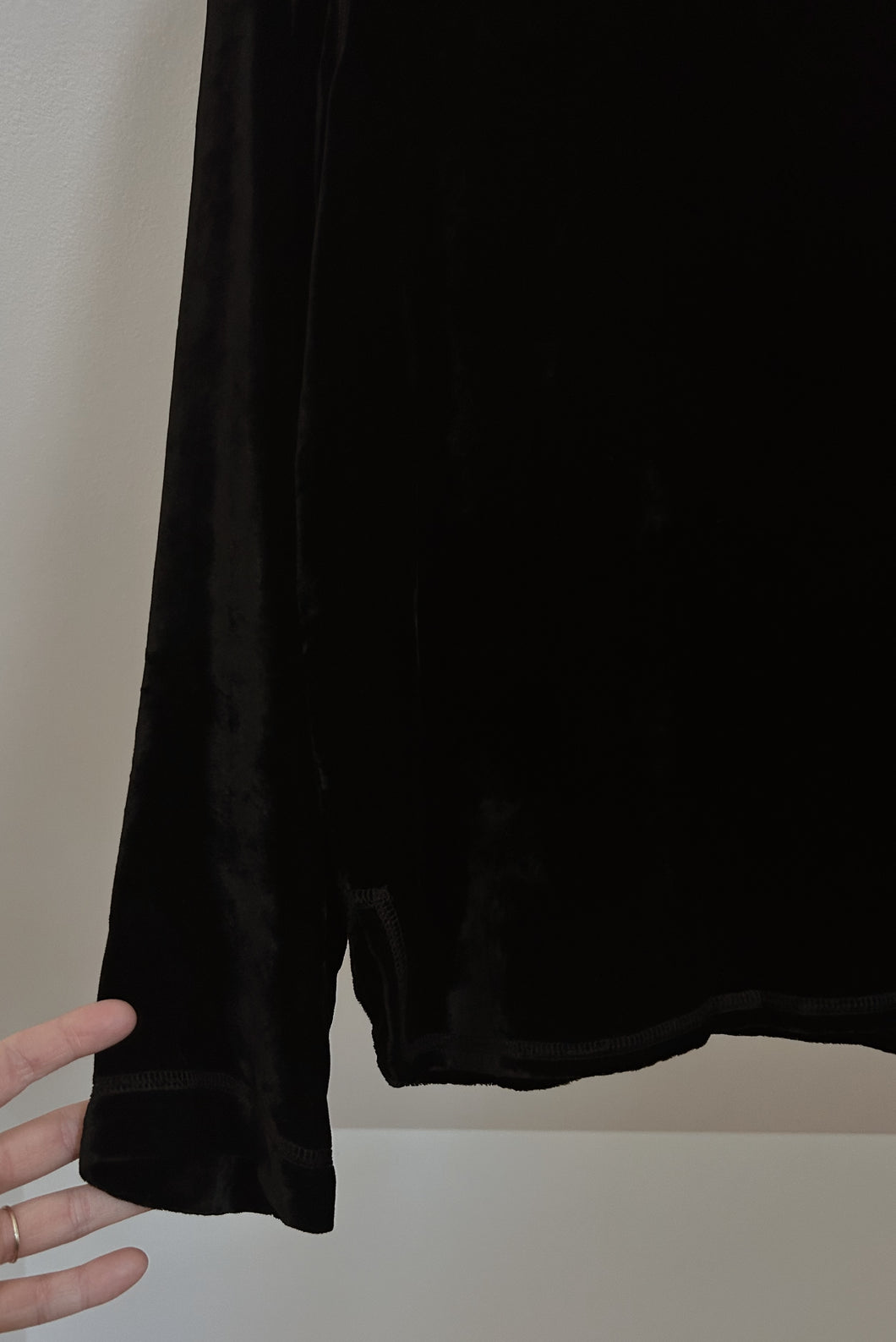 Y2K CRUSHED BLACK VELVET CREW NECK TOP | SIZE S