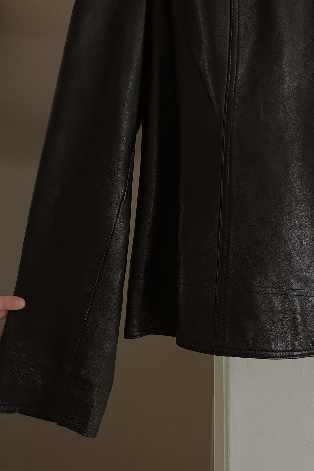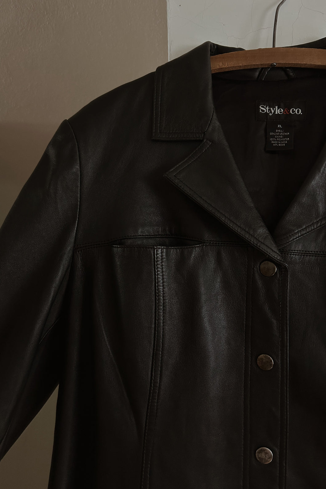 Y2K BLACK LEATHER SHIRT JACKET | SIZE L