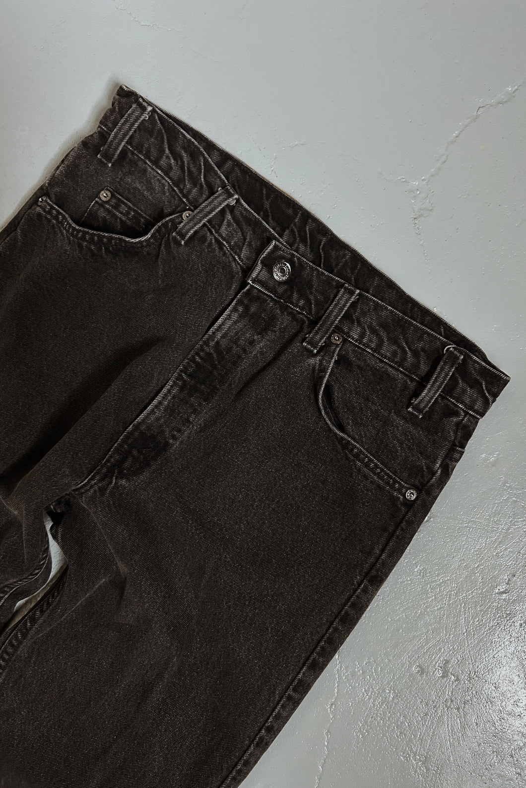 Early 1990's Levi's Washed Black Classic 505 Straight Orange Tab Denim | Higher Mid Rise | "Regular" Classic Fit Straight Leg Silhouette